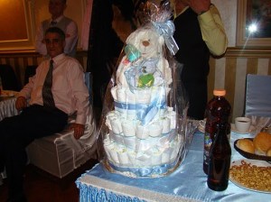 Tortul contine diverse obiecte utile pentru primele luni de viata ale copilului.