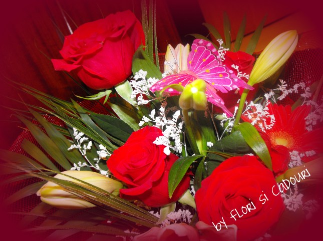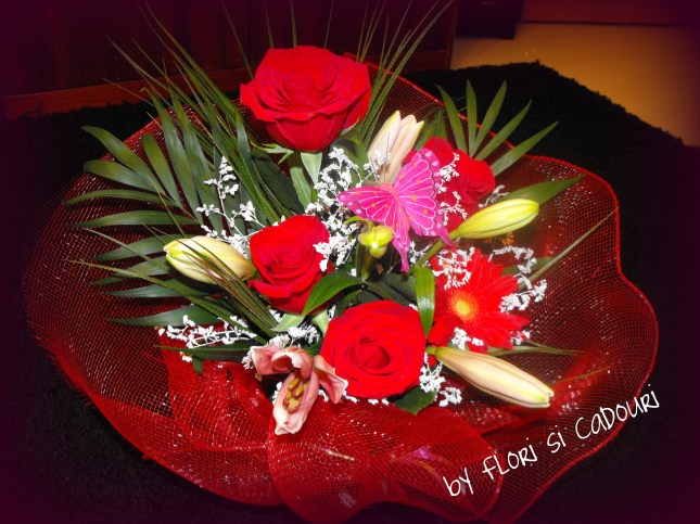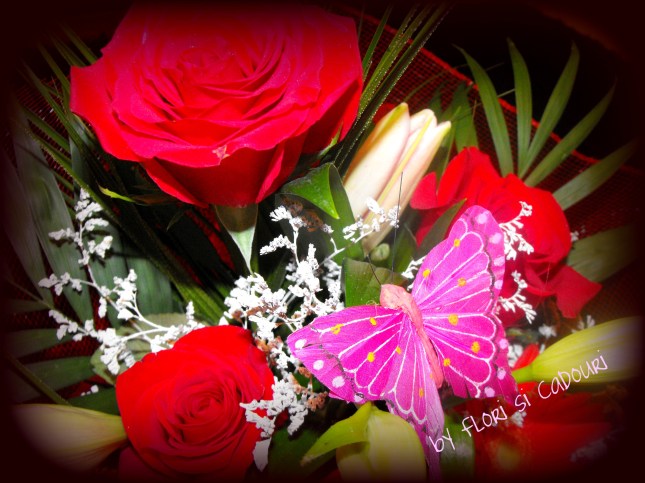 Aranjament trandafiri si crini
