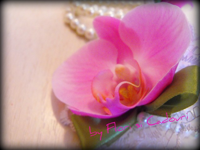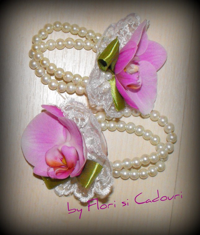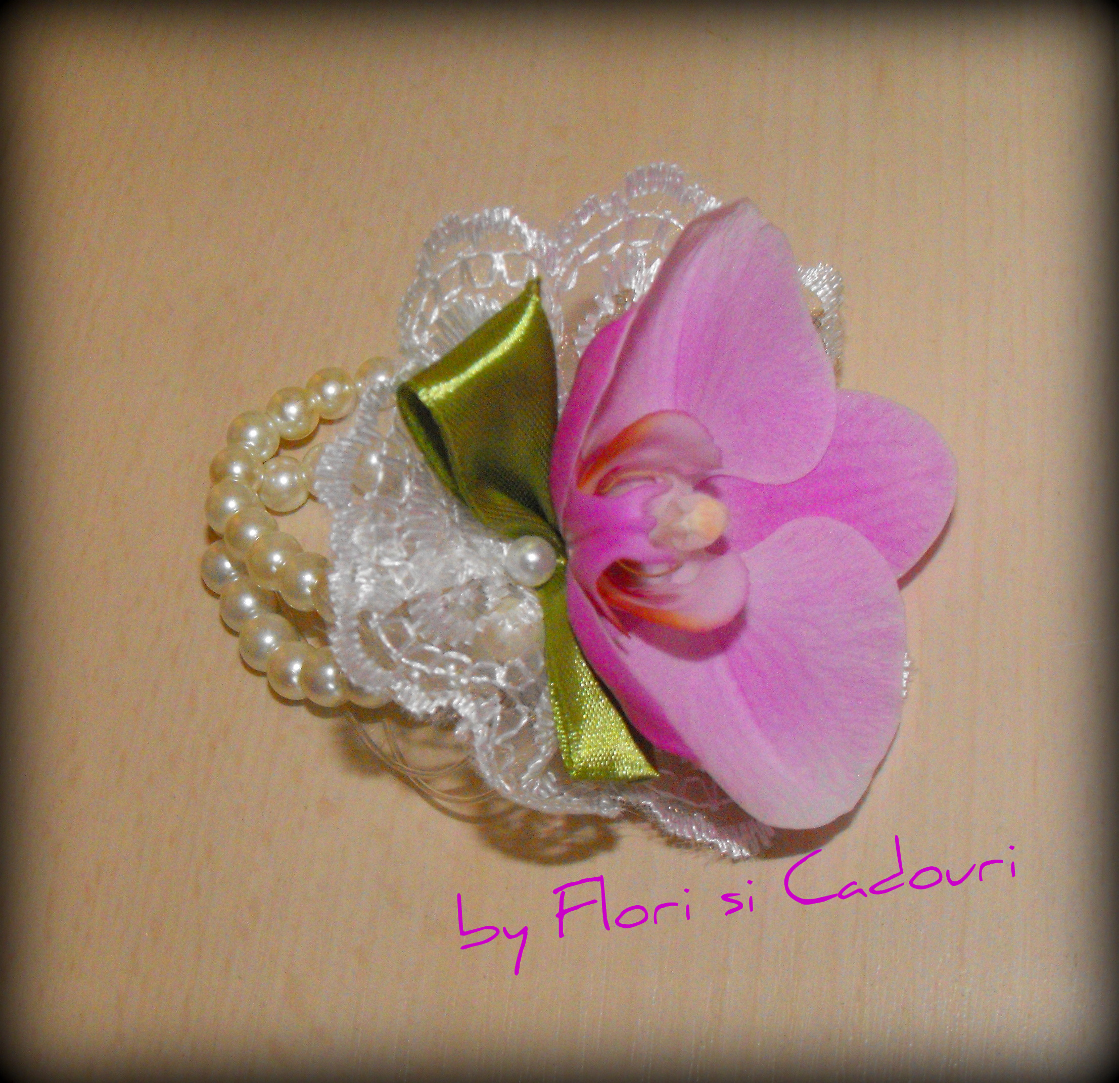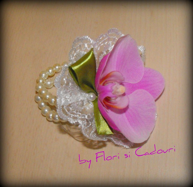 Corsaj de mana din orhidee Phalenopsis si dantela,