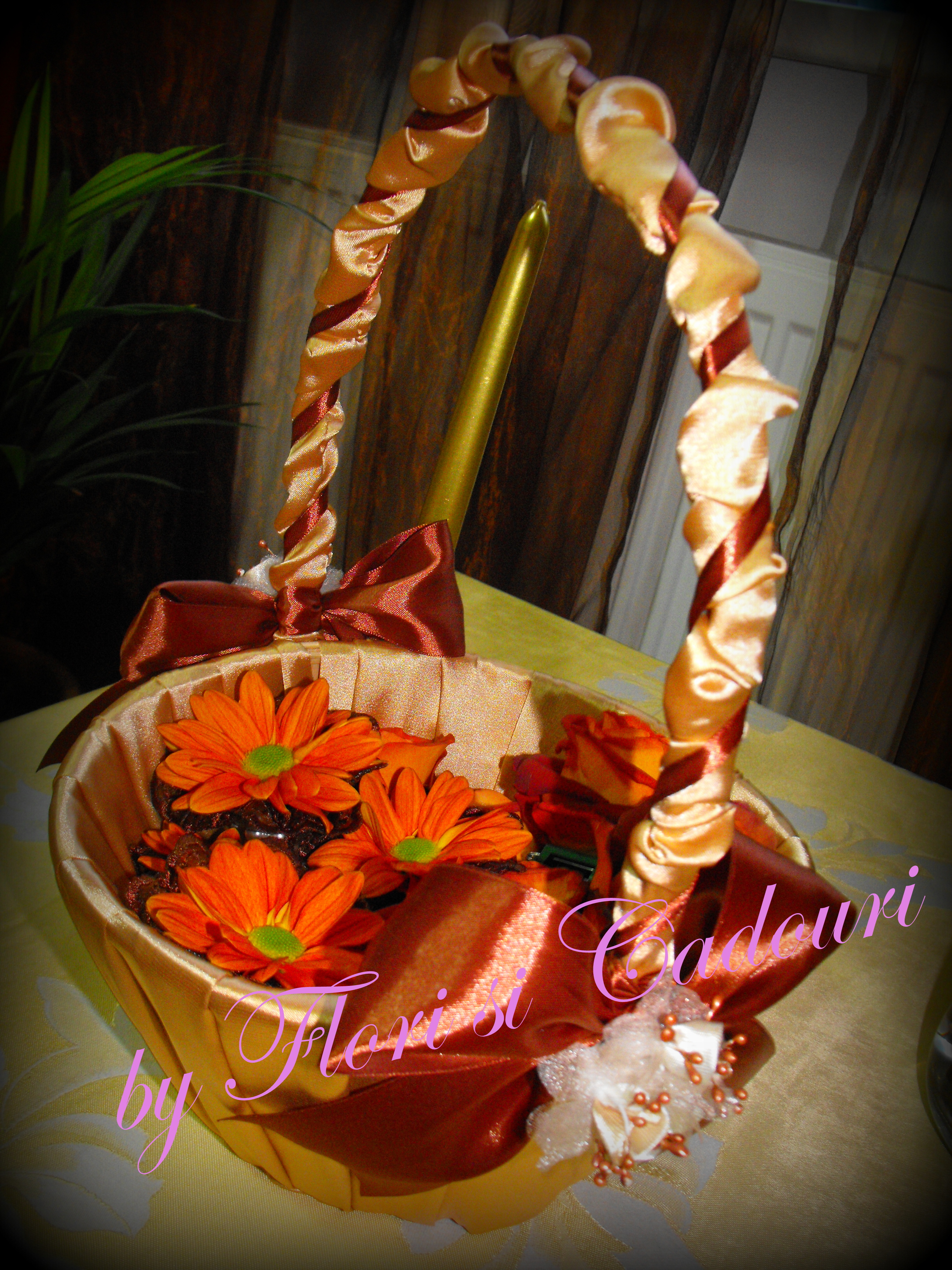 Cosulet pentru cocarde imbracat in satin aramiu