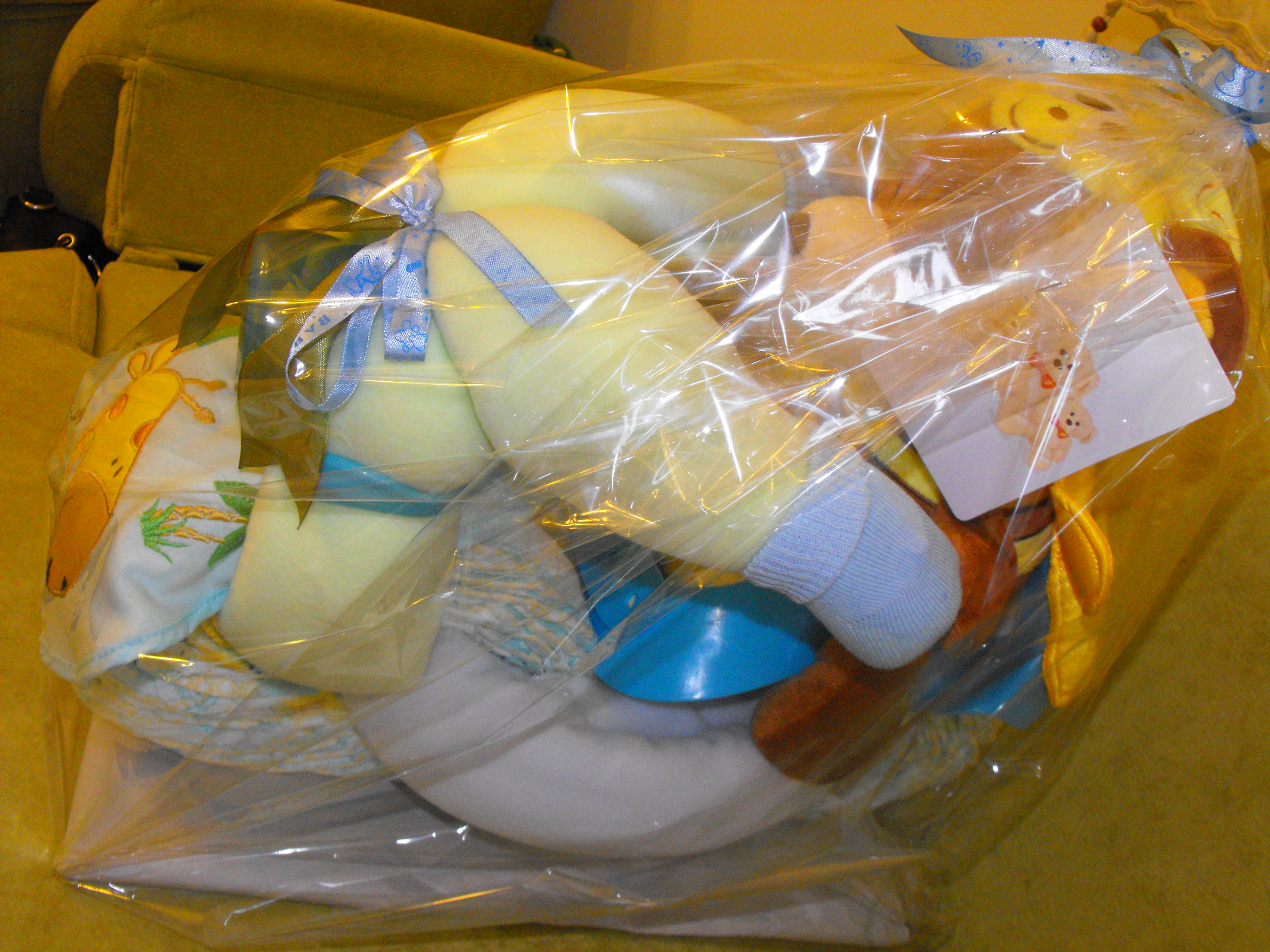 Ideal pentru botez sau pentru aniversarea bebelusului, contine obiecte ce pot fi folosite – scutece, paturici, bavetele, sosetele, un biberon si o jucarie de plus.