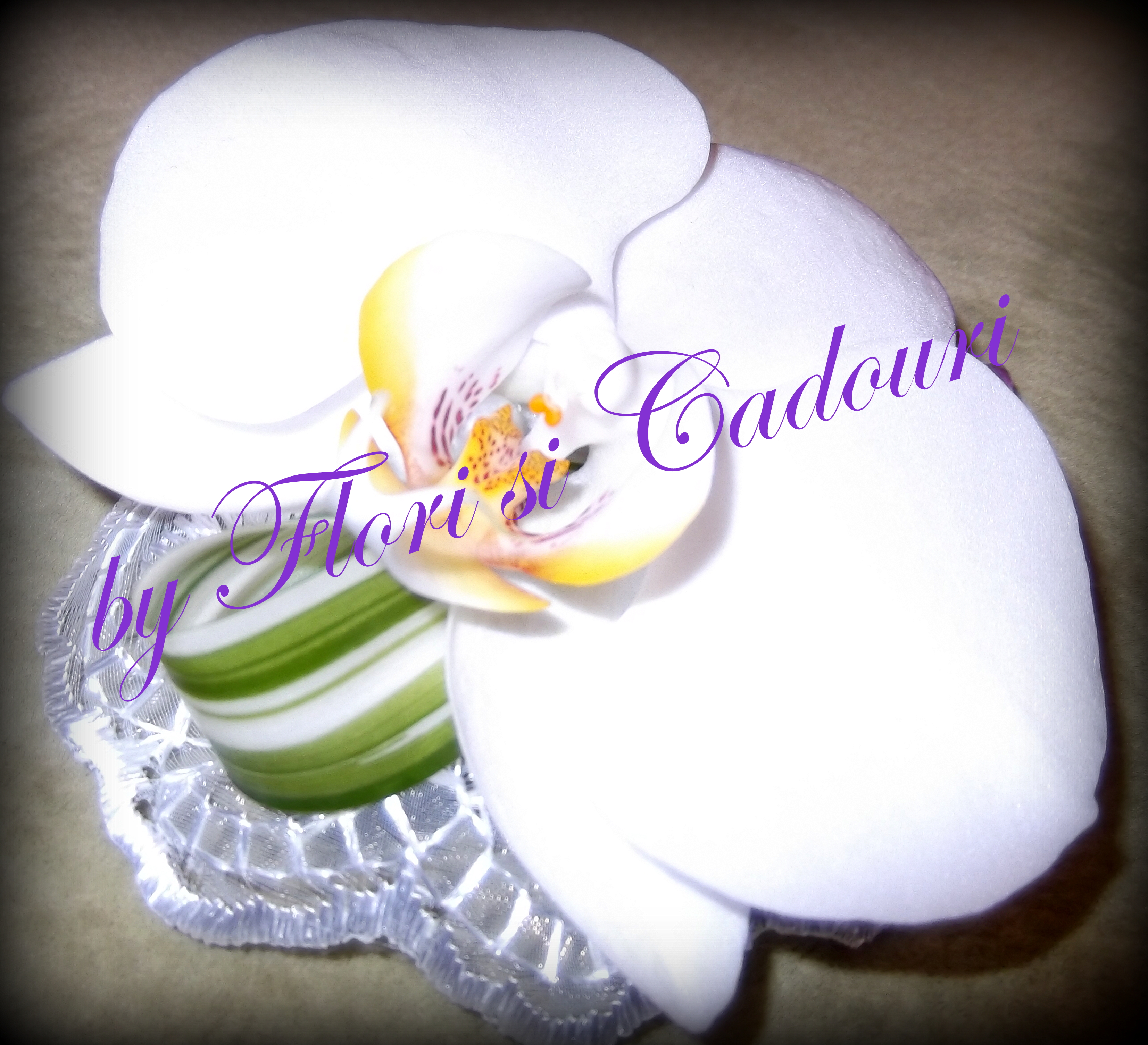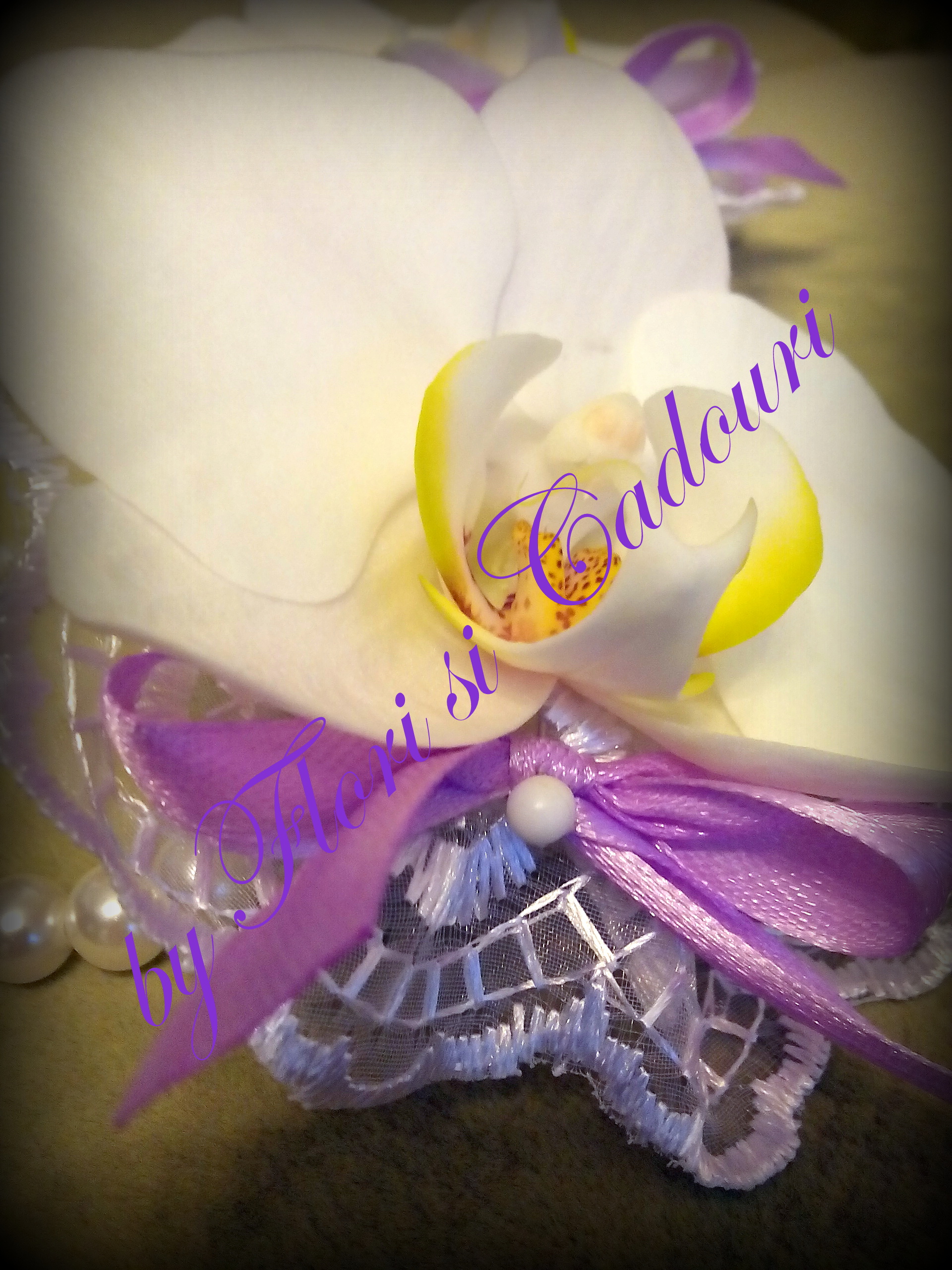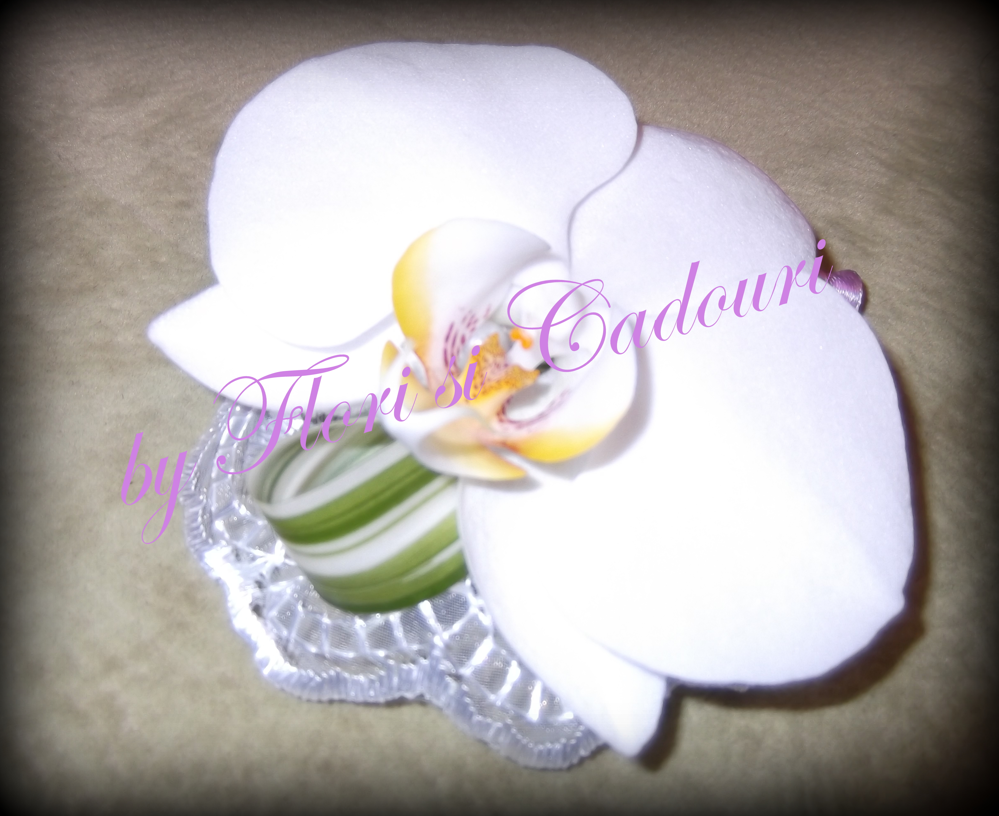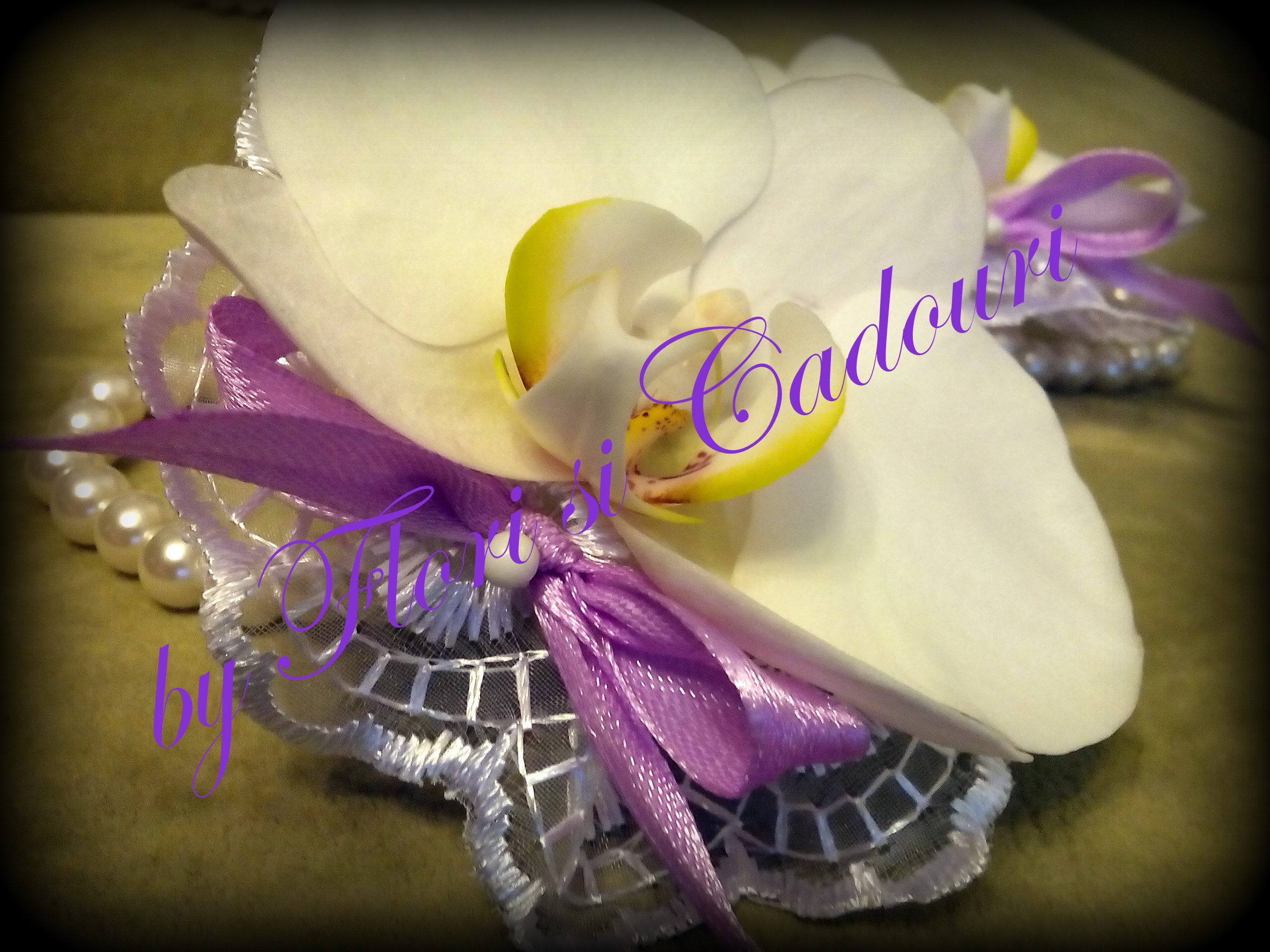 cu orhidee phalaenopsis si suport de dantela cu perle